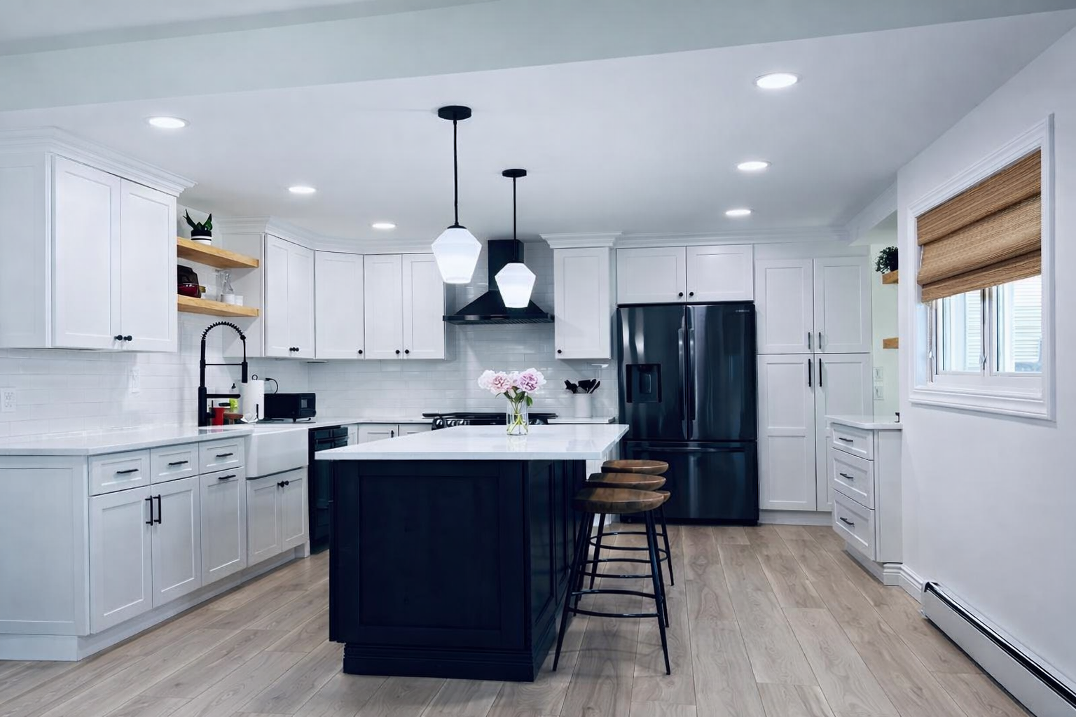 A standard 10x10 kitchen typically costs $2,800-$3,500 for cabinet supply only. Final pricing depends on your kitchen size and cabinet style.